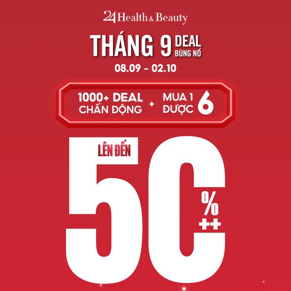 Từ 08/09 – 02/10/2025, 24 Health & Beauty đem đến chương trình ưu dãi với deal bùng nổ:
