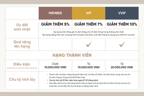 3. Hạng thành viên càng cao - Ưu đãi sinh nhật càng lớn