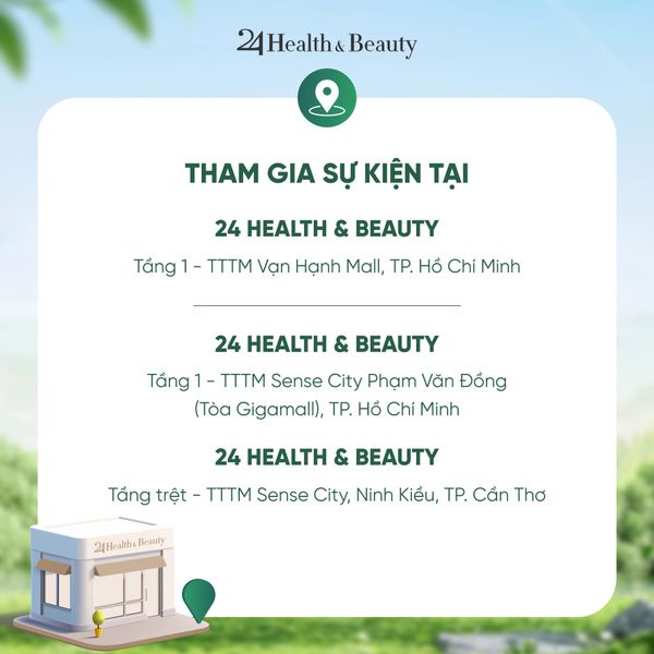 - 24 Health & Beauty – Tầng 1, TTTM Vạn Hạnh Mall, Số 11 Sư Vạn Hạnh, Phường Hòa Hưng, TP. Hồ Chí Minh