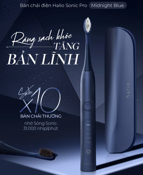 Đánh răng đúng cách không chỉ giúp làm sạch răng mà còn góp phần quan trọng trong việc ngăn ngừa các bệnh lý về nướu, viêm nha chu, tụt lợi hay hôi miệng. Với thiết kế hiện đại và công nghệ sóng âm tiên tiến, Halio Sonic Whitening Toothbrush PRO Midnight Blue là người bạn đồng hành hoàn hảo giúp bạn chăm sóc răng – nướu toàn diện, cho nụ cười rạng rỡ và hơi thở thơm mát mỗi ngày.