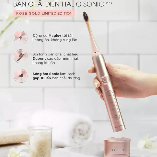 Tên sản phẩm: Bàn Chải Điện Halio Sonic Whitening Toothbrush PRO – Rose Gold