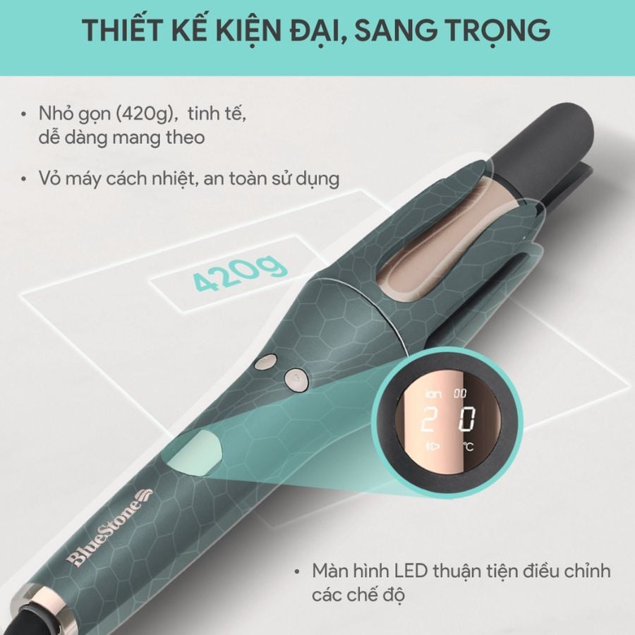 Muốn có mái tóc xoăn bồng bềnh hay suôn thẳng tự nhiên mà không cần ra salon? Máy tạo kiểu tóc BlueStone HSB-1738 sẽ là trợ thủ đắc lực của bạn. Với thiết kế nhỏ gọn, trục uốn tự xoay 360 độ, làm nóng nhanh Instant Heat, công nghệ ion âm chăm sóc tóc chuyên sâu, sản phẩm mang đến trải nghiệm tạo kiểu linh hoạt, an toàn và dễ dàng cho mọi cô nàng hiện đại.